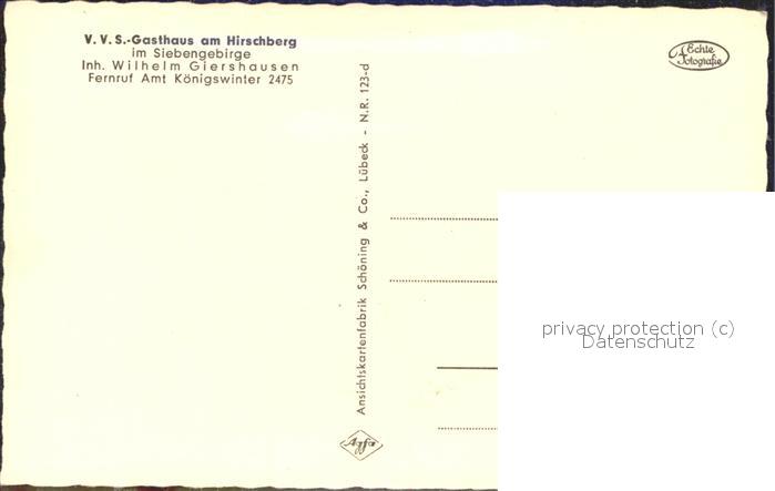 41479859 Koenigswinter VVS Gasthaus am Hirschberg KatCode 11110005382024