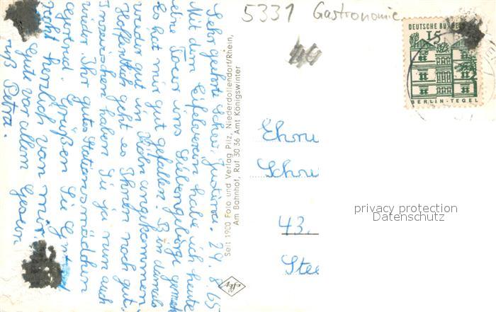 73689801 alte Postkarte Koenigswinter Wanderwege um den oelberg im Siebengebirge Berggaststaette postalisch gelaufen Erhaltung siehe scans [FriedD77] KatCode: 11110005382024