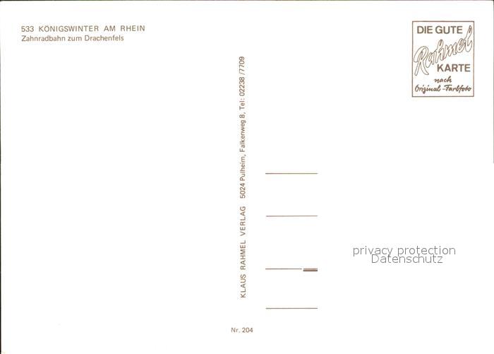 71931167 Koenigswinter Zahnradbahn zum Drachenfels postalisch nicht gelaufen Erhaltung siehe scans KatCode: 11110005382024