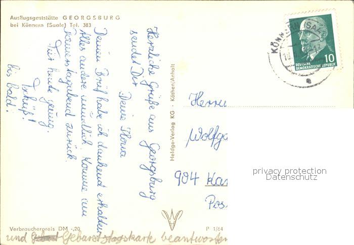 72427869 alte Postkarte Koennern Georgsburg Restaurant postalisch gelaufen Erhaltung siehe scans KatCode: 11110015089195