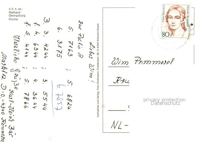 73841672 Koennern Saale Rathaus Georgsburg Kirche postalisch gelaufen Erhaltung siehe scans [WerneD78] alte Postkarte Wern Katcode 11110015089195