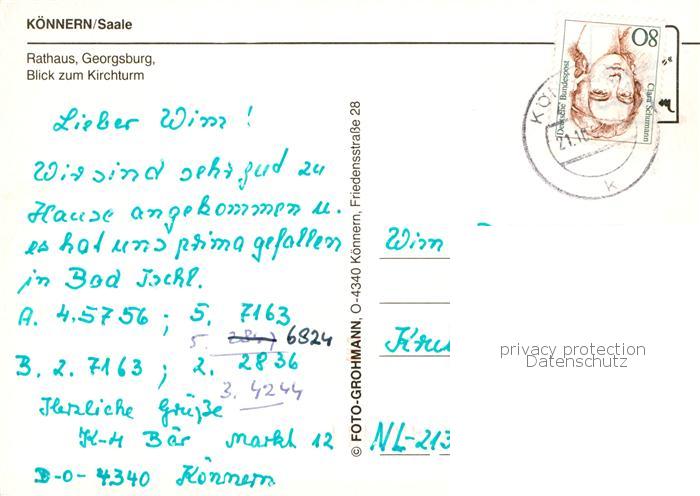 73841673 Koennern Saale Rathaus Georgsburg Kirchturmblick postalisch gelaufen Erhaltung siehe scans [WerneD78] alte Postkarte Wern Katcode 11110015089195