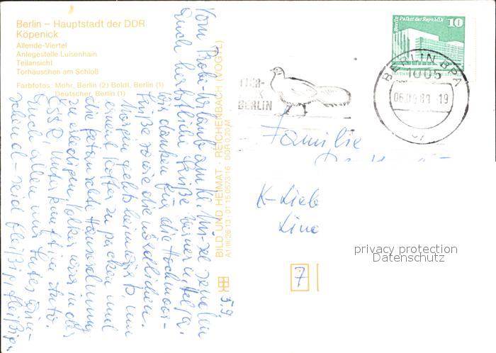 72372225 alte Postkarte Koepenick Allende Viertel Anlegestelle Luisenhain Teilansicht Torhaeushen am Schloss postalisch gelaufen Erhaltung siehe scans KatCode: 11110011000000