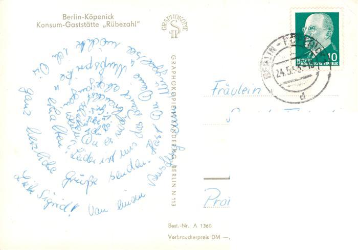73887700 alte Postkarte Koepenick Coepenick Konsum Gaststaette Ruebezahl postalisch gelaufen Erhaltung siehe scans [WerneD78] KatCode: 11110011000000