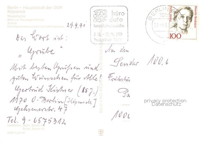73061264 alte Postkarte Koepenick Mueggelspree Baumgarteninsel Schloss Kunstgewerbemuseum Schloss postalisch gelaufen Erhaltung siehe scans [FriedD77] KatCode: 11110011000000