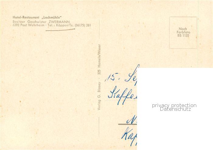 73844939 Koeppen Wehrheim Hotel Restaurant Lochmuehle postalisch nicht gelaufen Erhaltung siehe scans [FriedD77] Frie Katcode 11110006434012