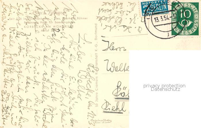 73850405 alte Postkarte Koerbecke Moehnesee Haus Boehmer Fachwerkhaus postalisch gelaufen Erhaltung siehe scans [FriedD77] KatCode: 11110005974032