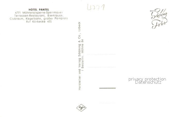73694053 Koerbecke Moehnesee Hotel Pantel Moehnesee Moehnetalsperre postalisch nicht gelaufen Erhaltung siehe scans [WerneD78] KatCode: 11110005974032