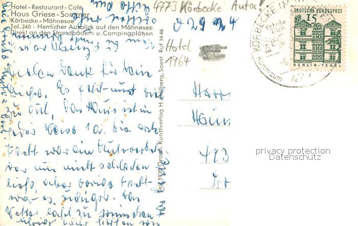 73703137 alte Postkarte Koerbecke Moehnesee Hotel- Restaurant- Cafe Haus Griese- Sommer postalisch gelaufen Erhaltung siehe scans [LiesaD40] KatCode: 11110005974032
