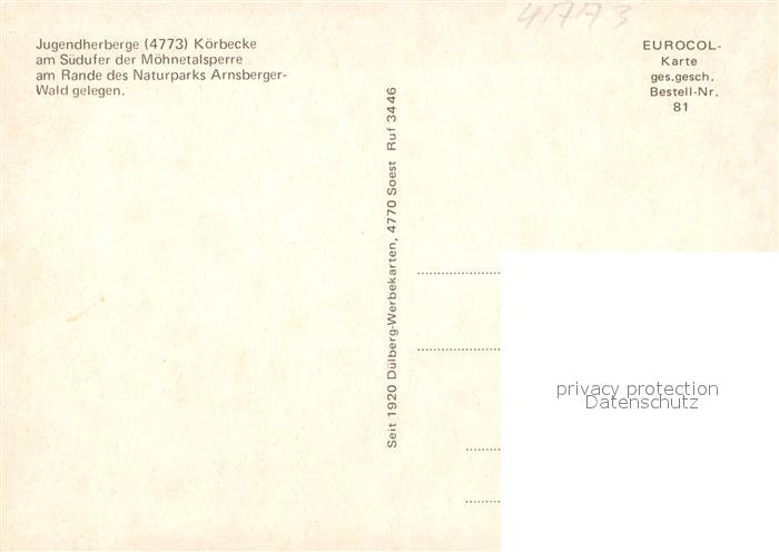 73086692 Koerbecke Moehnesee Jugendherberge postalisch nicht gelaufen Erhaltung siehe scans [NatalD47] KatCode: 11110005974032