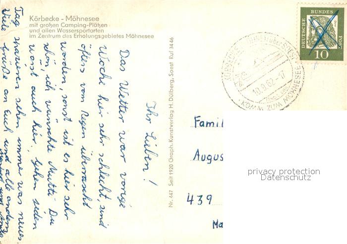 73048232 alte Postkarte Koerbecke Moehnesee mit Campingplatz postalisch gelaufen Erhaltung siehe scans [WerneD78] KatCode: 11110005974032