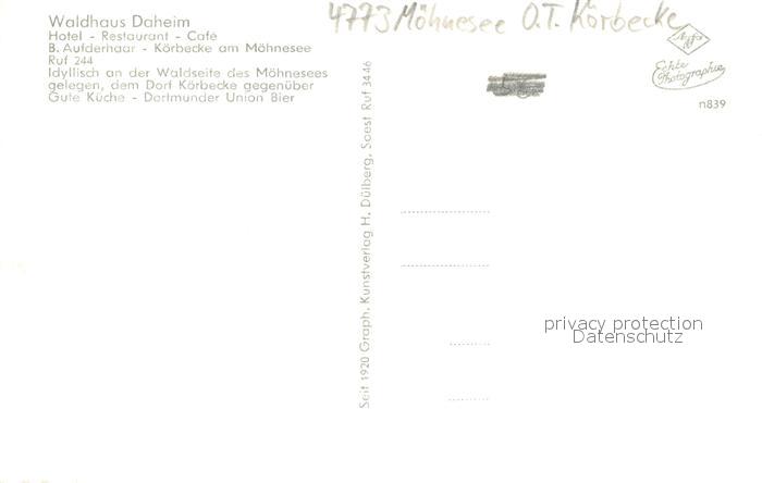 73694071 Koerbecke Moehnesee Waldhaus Daheim Hotel Gastraeume postalisch nicht gelaufen Erhaltung siehe scans [WerneD78] KatCode: 11110005974032