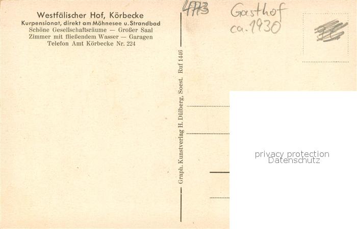 73703130 Koerbecke Moehnesee Westfaelischer Hof Aussenansicht postalisch nicht gelaufen Erhaltung siehe scans [LiesaD40] KatCode: 11110005974032