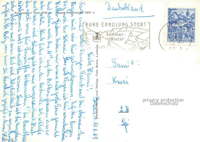 74152790 alte Postkarte Koerbersee Schroecken Vorarlberg AT mit Hotel und Braunarlspitze postalisch gelaufen Erhaltung siehe scans [WerneD78] KatCode: 11390341080234