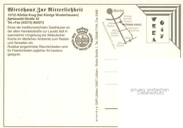 73648346 Koerbis Krug Wirtshaus Zur Ritterlichkeit Gastraeume Bar postalisch nicht gelaufen Erhaltung siehe scans [WerneD78] KatCode: 11110012061260