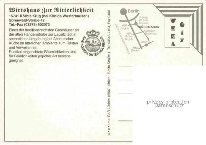74025050 Koerbis Krug Wirtshaus zur Ritterlichkeit Gastraum postalisch nicht gelaufen Erhaltung siehe scans [FriedD77] KatCode: 11110012061260