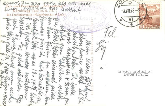11647020 alte Postkarte Koernlisegg Ski und Ferienheim Sonnenber postalisch gelaufen Erhaltung siehe scans KatCode: 11470030075596