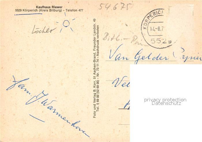 73130197 alte Postkarte Koerperich Eifel postalisch gelaufen Erhaltung siehe scans [PaolaD17] KatCode: 11110007232067
