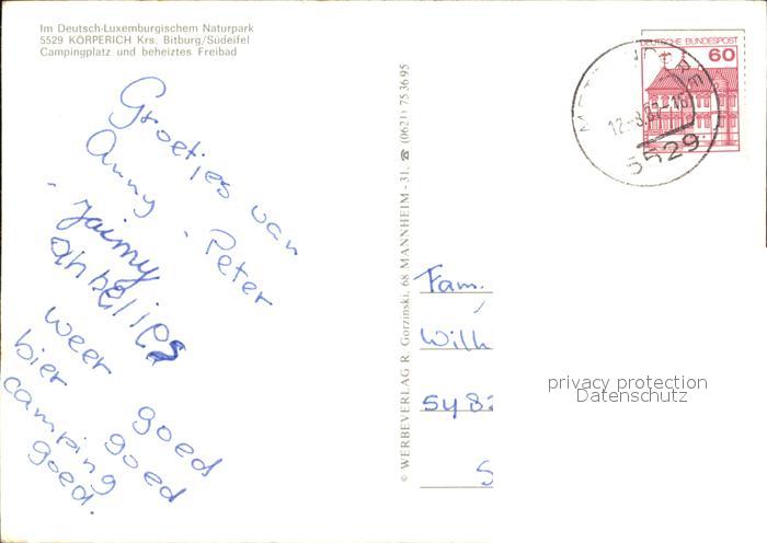 72451215 alte Postkarte Koerperich Eifel Campingplatz und Freibad postalisch gelaufen Erhaltung siehe scans KatCode: 11110007232067