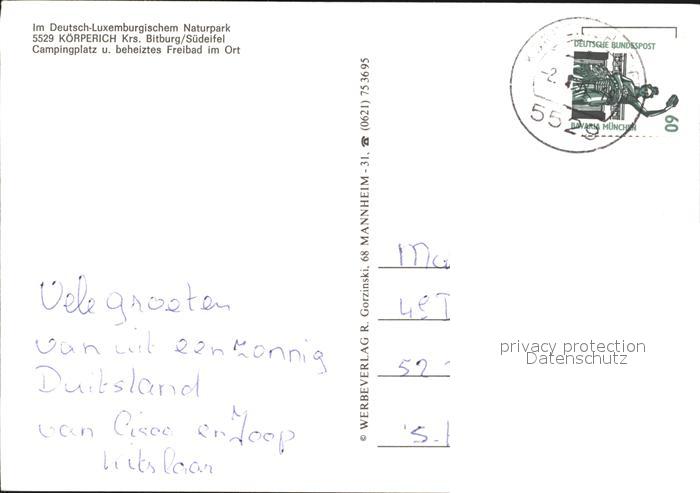 72426291 alte Postkarte Koerperich Eifel Deutsch Luxemburgischer Naturpark Campingplatz Schwimmbad postalisch gelaufen Erhaltung siehe scans KatCode: 11110007232067
