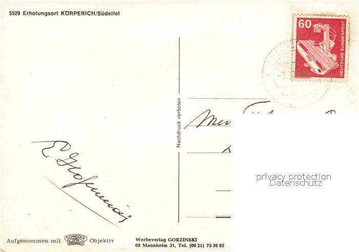 72865101 alte Postkarte Koerperich Eifel Fliegeraufnahme postalisch gelaufen Erhaltung siehe scans [LiesaD40] KatCode: 11110007232067