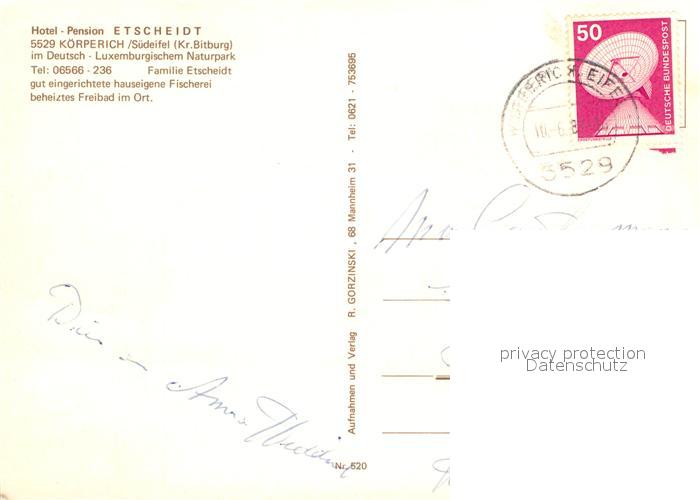 72941348 alte Postkarte Koerperich Eifel Hotel-Pension Etscheidt postalisch gelaufen Erhaltung siehe scans [PaolaD17] KatCode: 11110007232067