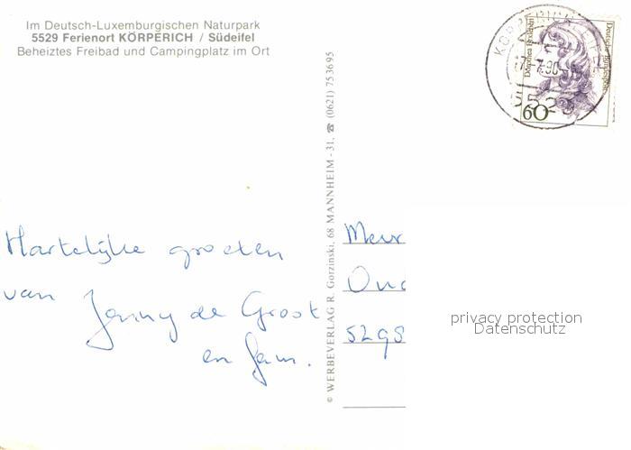 72771521 alte Postkarte Koerperich Eifel Naturpark Suedeifel Teilansichten postalisch gelaufen Erhaltung siehe scans [WerneD78] KatCode: 11110007232067