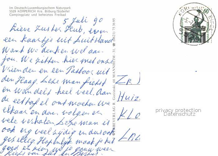 72655701 alte Postkarte Koerperich Eifel Naturpark Suedeifel postalisch gelaufen Erhaltung siehe scans [LiesaD40] KatCode: 11110007232067