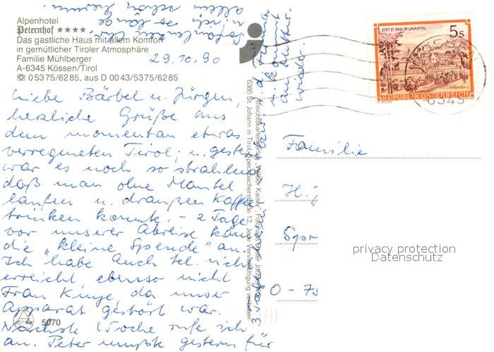 73318601 alte Postkarte Koessen Tirol Alpenhotel Peternhof Alpen postalisch gelaufen Erhaltung siehe scans [FriedD77] KatCode: 11390335070412