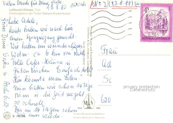 73048945 alte Postkarte Koessen Tirol Erholungsheim Tiroler Gebietskrankenkasse postalisch gelaufen Erhaltung siehe scans [KathaD81] KatCode: 11390335070412