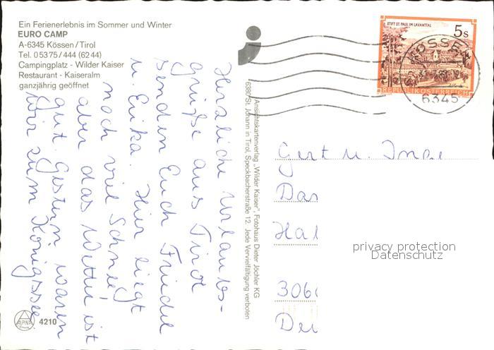 72502807 alte Postkarte Koessen Tirol Euro Camp im Winterkleid postalisch gelaufen Erhaltung siehe scans KatCode: 11390335070412