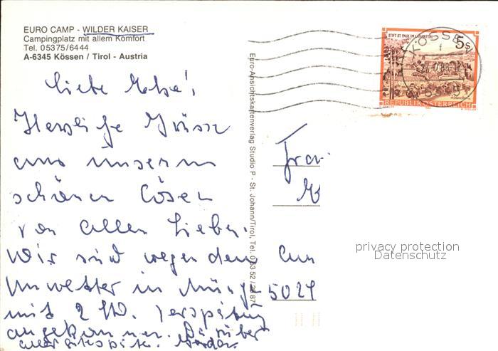72417396 alte Postkarte Koessen Tirol Euro-Camp Wilder Kaiser postalisch gelaufen Erhaltung siehe scans KatCode: 11390335070412