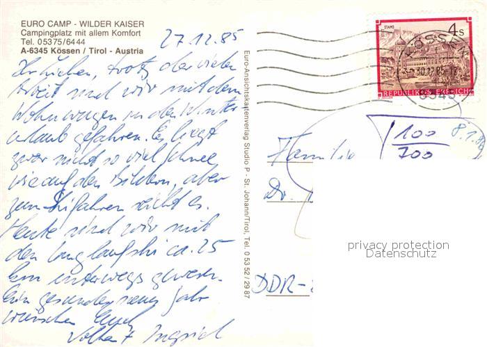72689711 alte Postkarte Koessen Tirol Euro Camp Wilder Kaiser postalisch gelaufen Erhaltung siehe scans [WerneD78] KatCode: 11390335070412