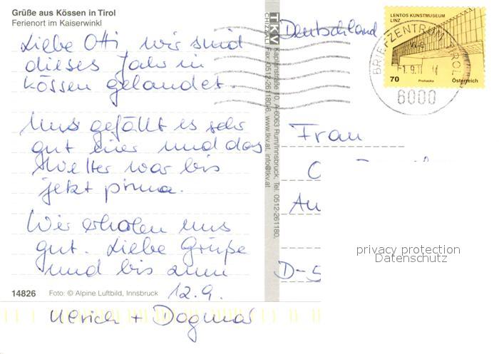 73242992 alte Postkarte Koessen Tirol Fliegeraufnahme postalisch gelaufen Erhaltung siehe scans [KathaD81] KatCode: 11390335070412