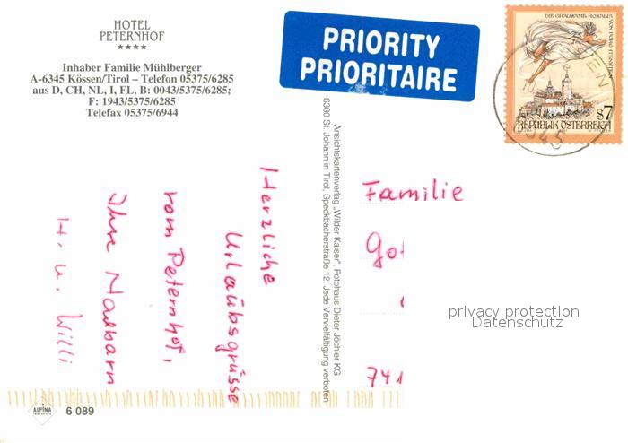 72849245 alte Postkarte Koessen Tirol Freizeitparadies Hotel Peternhof postalisch gelaufen Erhaltung siehe scans [KathaD81] KatCode: 11390335070412