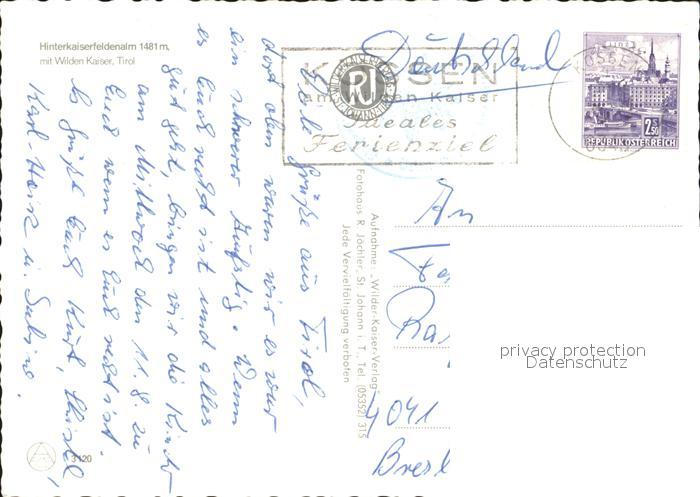 72289834 alte Postkarte Koessen Tirol Hinterkaiserfeldenalm Wilder Kaiser postalisch gelaufen Erhaltung siehe scans KatCode: 11390335070412