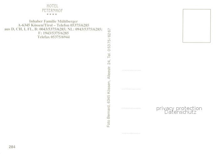 73587761 Koessen Tirol Hotel Peternhof Restaurant Bar postalisch nicht gelaufen Erhaltung siehe scans [FriedD77] KatCode: 11390335070412