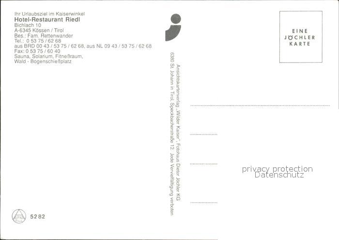 72179902 Koessen Tirol Hotel Restaurant Riedl Segelboot postalisch nicht gelaufen Erhaltung siehe scans KatCode: 11390335070412