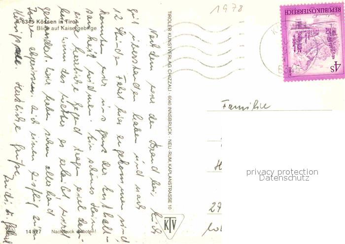 72898893 alte Postkarte Koessen Tirol mit Kaisergebirge postalisch gelaufen Erhaltung siehe scans [FriedD77] KatCode: 11390335070412