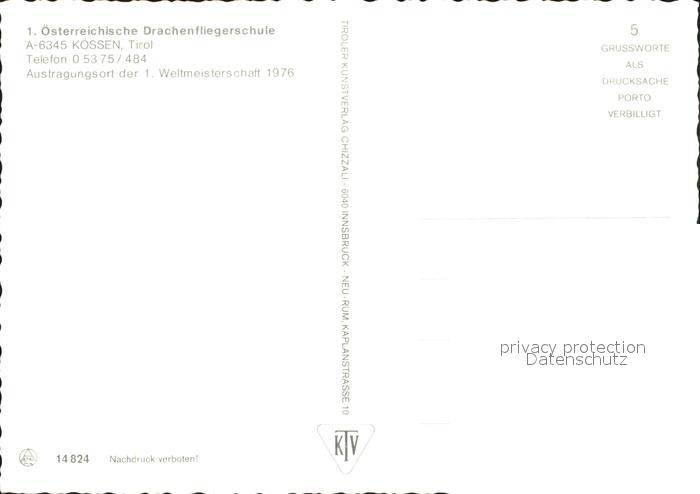 72141596 Koessen Tirol Panorama Drachenflieger postalisch nicht gelaufen Erhaltung siehe scans KatCode: 11390335070412