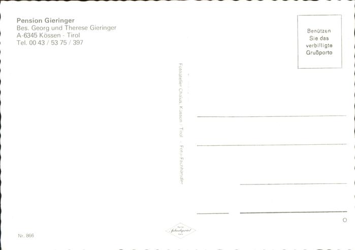 71419633 Koessen Tirol Pension Gieringer im Winter postalisch nicht gelaufen Erhaltung siehe scans KatCode: 11390335070412