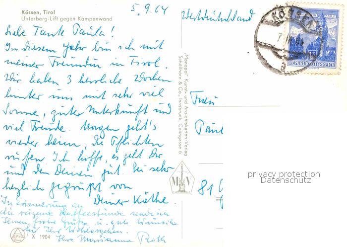 72845426 alte Postkarte Koessen Tirol Untersberg Lift Kampenwand postalisch gelaufen Erhaltung siehe scans [AndreD76] KatCode: 11390335070412