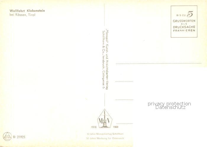 73313158 Koessen Tirol Wallfahrt Klobenstein postalisch nicht gelaufen Erhaltung siehe scans [NatalD47] KatCode: 11390335070412