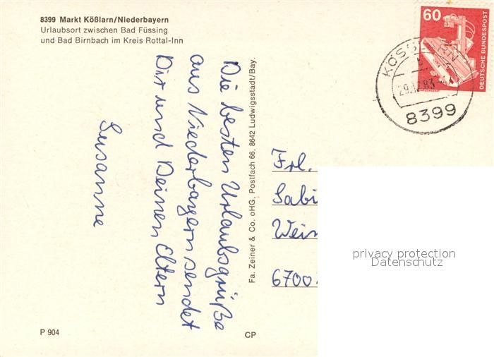 73672145 alte Postkarte Koesslarn Panorama Brunnen Unteres Torhaus Wehrmauer der Kirchenburg Wappen postalisch gelaufen Erhaltung siehe scans [FriedD77] KatCode: 11110009275131