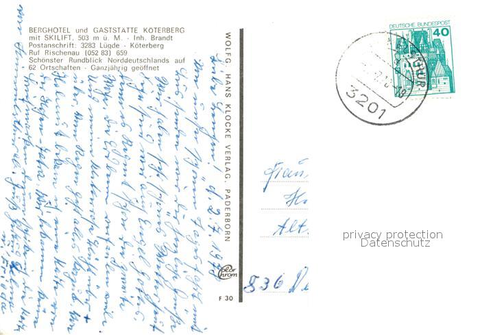 73166017 alte Postkarte Koeterberg Berghotel Gaststaette Koeterberg postalisch gelaufen Erhaltung siehe scans [KathaD81] KatCode: 11110005766052