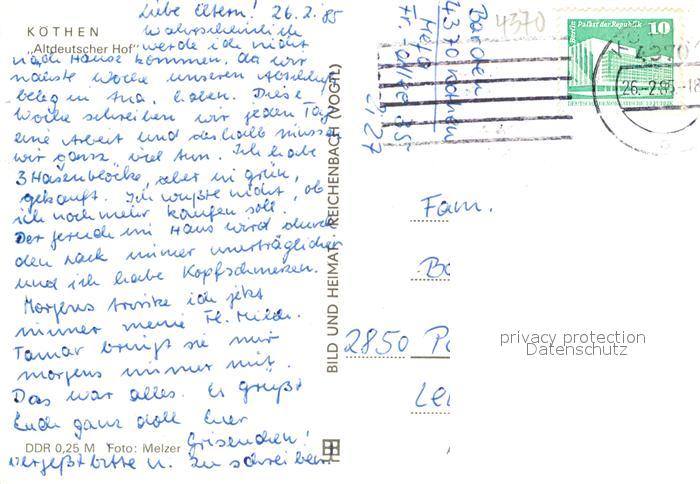 72920356 alte Postkarte Koethen Anhalt Altdeutscher Hof postalisch gelaufen Erhaltung siehe scans [LiesaD40] KatCode: 11110015082180
