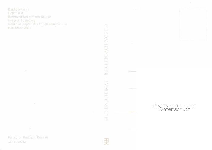 72617215 Koethen Anhalt Bachdenkmal Holzmarkt Bernhard Kellermann Str Boulevard Denkmal Karl Marx Allee postalisch nicht gelaufen Erhaltung siehe scans [WerneD78] KatCode: 11110015082180