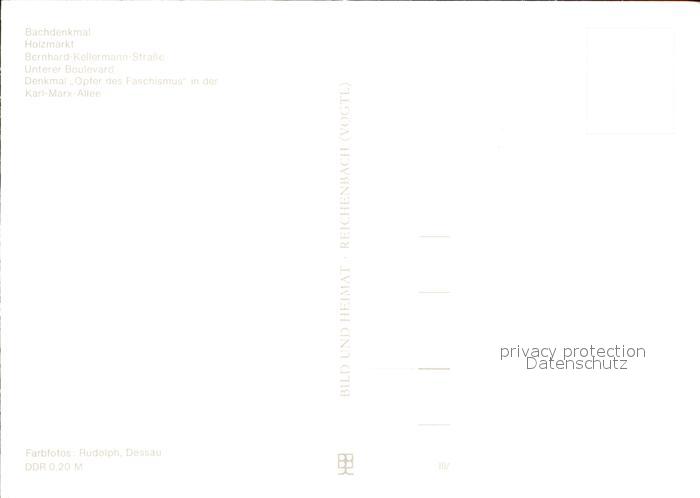 72543173 Koethen Anhalt Bachdenkmal Holzmarkt Bernhard Kellermann Str Unterer Boulevard Denkmal Karl Marx Allee postalisch nicht gelaufen Erhaltung siehe scans [WerneD78 kv016box] KatCode: 11110015082180