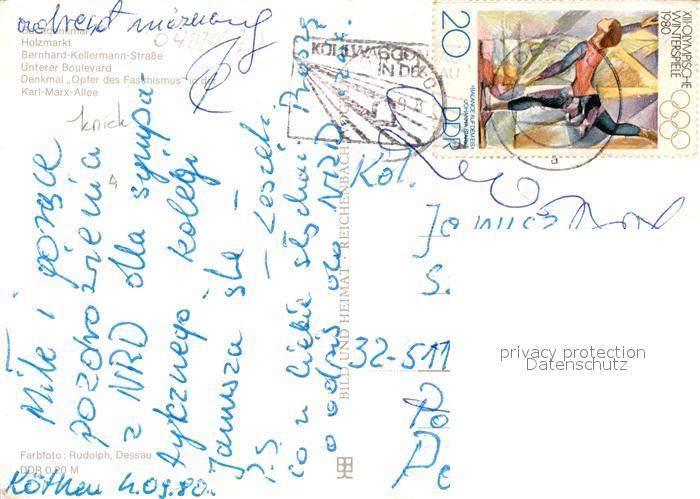 72935765 alte Postkarte Koethen Anhalt Denkmal Holzmarkt Bernhard Kellermann Strasse Boulevard Karl Marx Allee postalisch gelaufen Erhaltung siehe scans [FriedD77] KatCode: 11110015082180