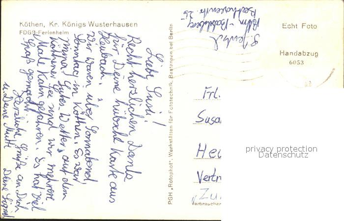 72280852 alte Postkarte Koethen Anhalt FDGB- Ferienheim postalisch gelaufen Erhaltung siehe scans KatCode: 11110015082180